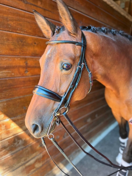 Sorprese is a 2010 16.1h Hannoverian mare by Sarkozy x Santina by Sherlock Holmes. This beautiful mare has shown through 4th level with consistent scores in the 70s. She loves to show and would make a great partner for an Amateur or Jr/YR looking for a safe and sweet horse to gain experience in the show ring.