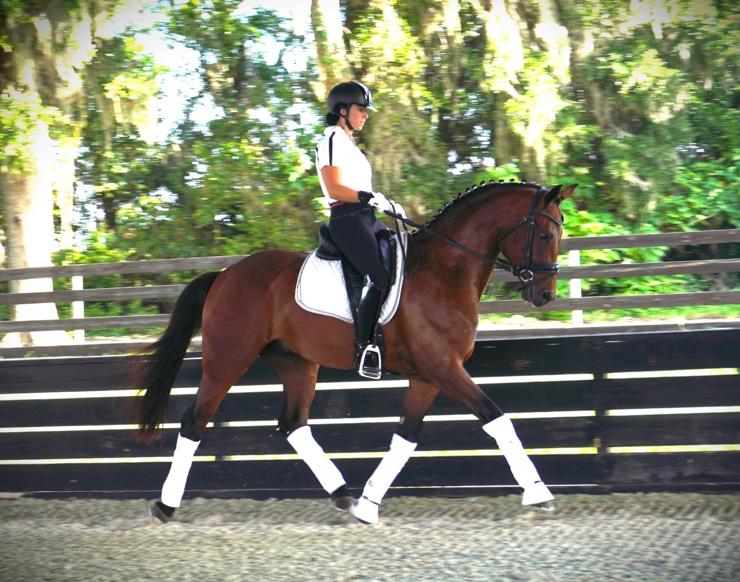 Ridden by Marta Renilla as her personal horse since he was 3yo. Amazing brain. Willing. Honest. Brave. Reliable. Talented. Natural uphill balance. Forward thinking. Light to the aids. Amateur friendly. X-rays on file.