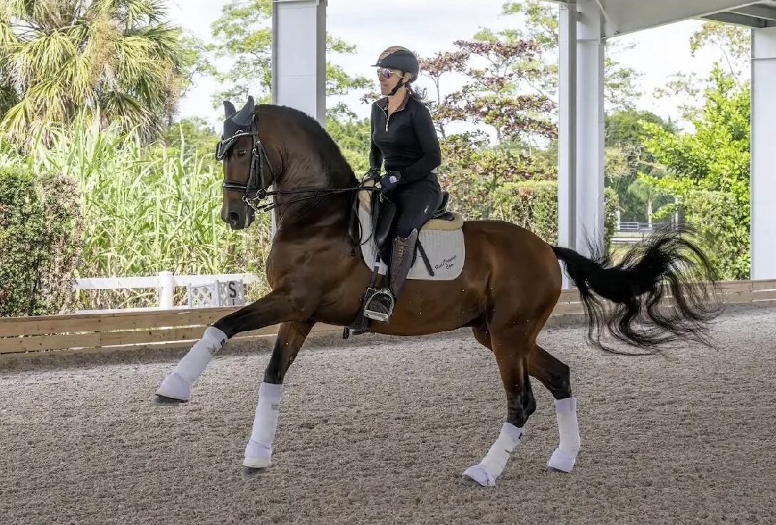 Uptown is a breathtaking 2013 Bay PRE gelding standing 16.3h, confirmed at Grand Prix and beautifully trained. He offers natural swing, an exceptional walk with great overtrack, and expressive, uphill gaits. He has successfully competed through the Grand Prix with scores over 67% and shown CDI Small Tour with scores above 70%.