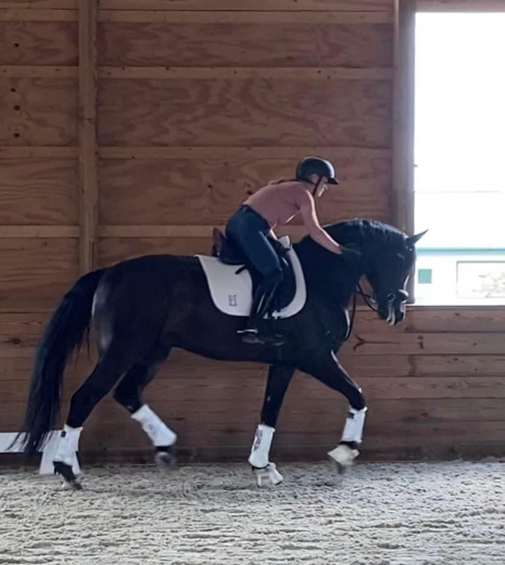 Frankie has scores to 70% in 3-3. He is schooling half steps and has clear FEI potential. He has 3 lovely gaits, beautiful half passes and a good canter. Frankie has a super fun personality and is easy to work around. Clips well, ships etc. He is suitable for professional or confident rider to develop. He is very comfortable and super fun to ride! No bucking, rearing or bolting just a forward ride.