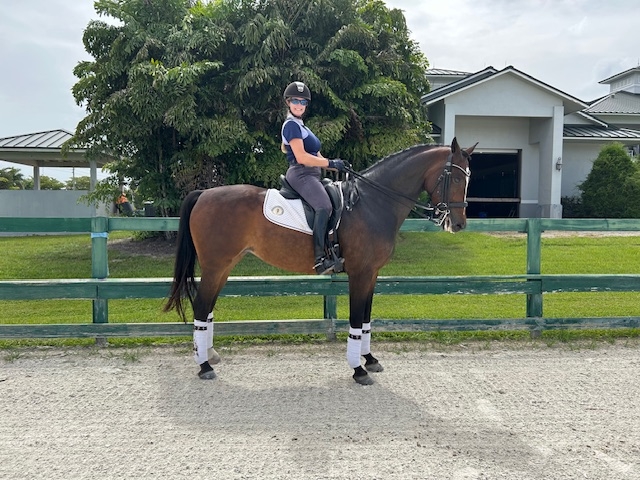 2013 Oldenburg mare by Royal Appearance has shown through 3rd level and schools 4th level movements. Sadie loves to please her rider with a super work ethic and comfortable gaits. This energetic sportscar is easy in the lateral work and sensitive to light aids with good power forward. She is uncomplicated to ride and the easiest horse to manage with a very basic nutrition program, no medical issues or maintenance and only shod in front. We love to load her on the trailer and go straight to the show ring or hack her down the road for a trail ride. She is enthusiastic about her work and so sweet. She would be ideal for an AA, Jr/YR or a professional to continue developing up the levels. She is fun size that fills up your leg with substance and hot of the leg and seat without a whip or spur. She is the total package looking for a dance partner that wants to have fun riding every day without the drama.